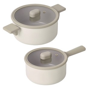 국산 IH 인덕션용으로 설계된 냄비 2종 세트로, 편수 18cm와 양수 20cm 구성으로 다양한 요리에 활용 가능하며, 크림베이지 색상으로 주방과 조화롭게 어울리며 내구성과 열전도성이 우수하다.